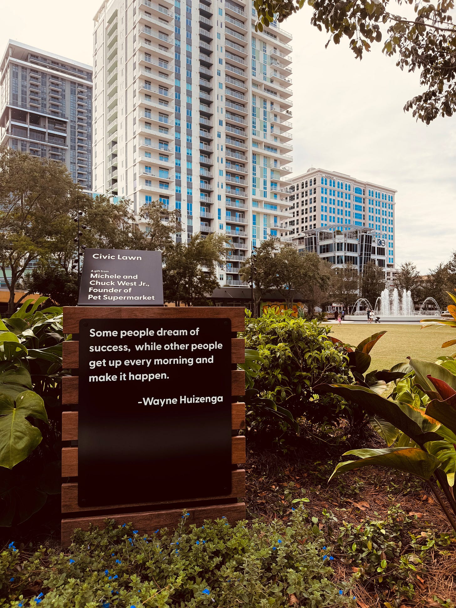 Over 25,000 people a month walk through the new Huizenga Park, but not many realize these wise words are on display on the eastern side of the green. I shared this same quote with our Acton friends who recently visited FTL.