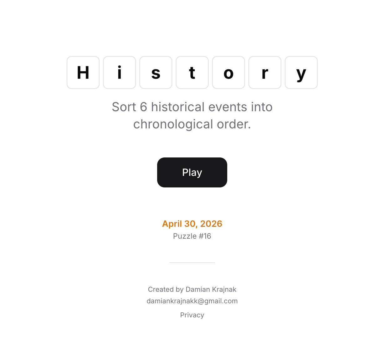 I love seeing a simple idea, executed well. Hisorty is that kind of game. Elegantly simple on the outside. Just test your sense of historical timelines. You get 6 cards from different moments in history, and you decide in which order they should organized.