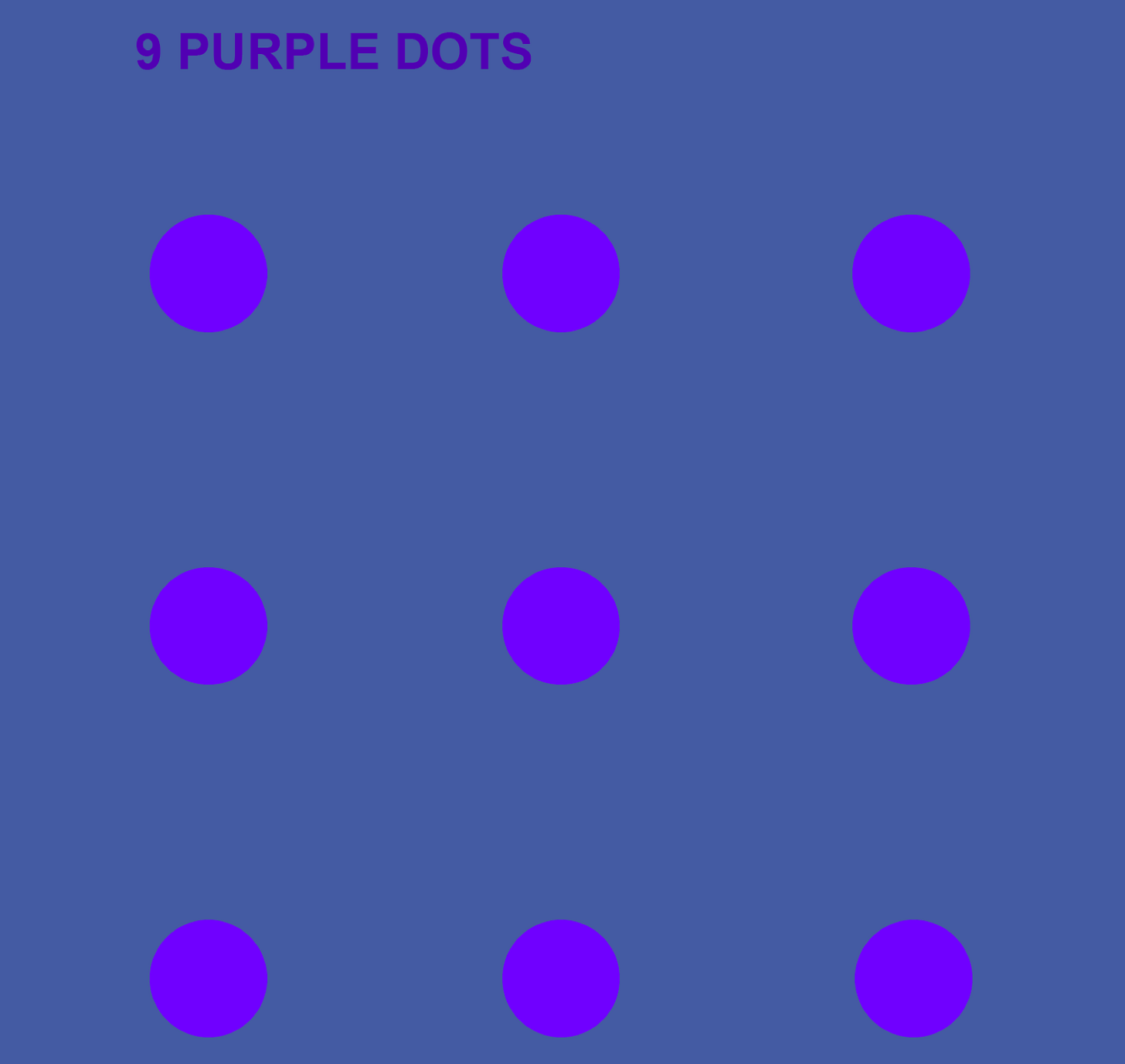 The illusion displays nine purple dots set against a blue backdrop; for viewers with standard color vision, the specific dot being focused on maintains its purple appearance, while the surrounding dots appear to blend into the blue background.